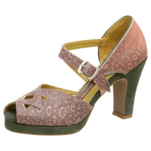 Dance the night away in fierce heel that is bound to be the attention grabber. Snake leather upper. Peep-toe platform. Adjustable quarter strap. Suede covered platform and heel. Synthetic sole