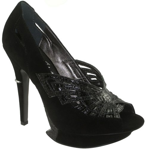 Cool and directional this is the hottest pump for this season. Sam Edelman Nixie in Black Suede and reptile printed leather. Sexy high heel open toe pumps. Softly padded inner sole. Heel is 5 inches and platform is 1 inches high. Imported.